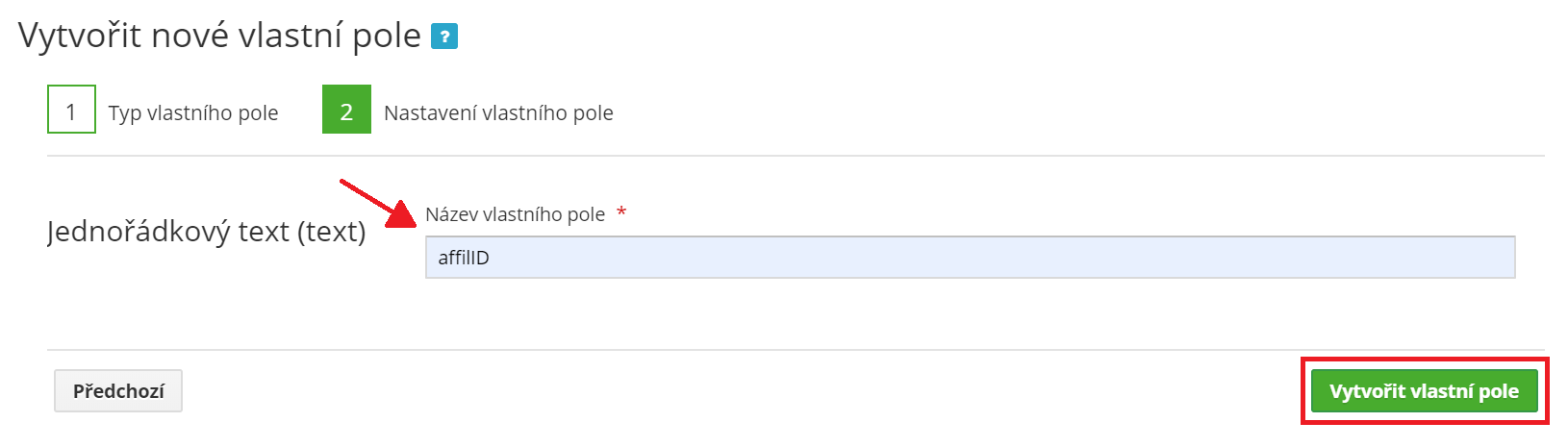 Name your custom field, for example, affilID, and click the Create Custom Field button.