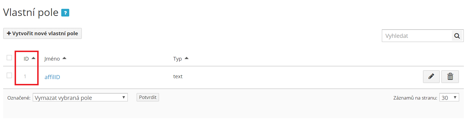 In the overview of your text fields, note the ID – or serial number – of the custom field you just created.