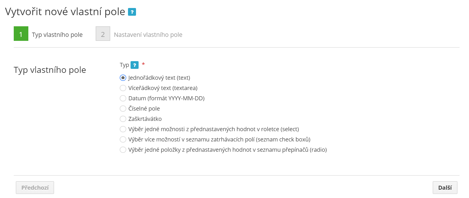 Now click on the Create new custom field icon.