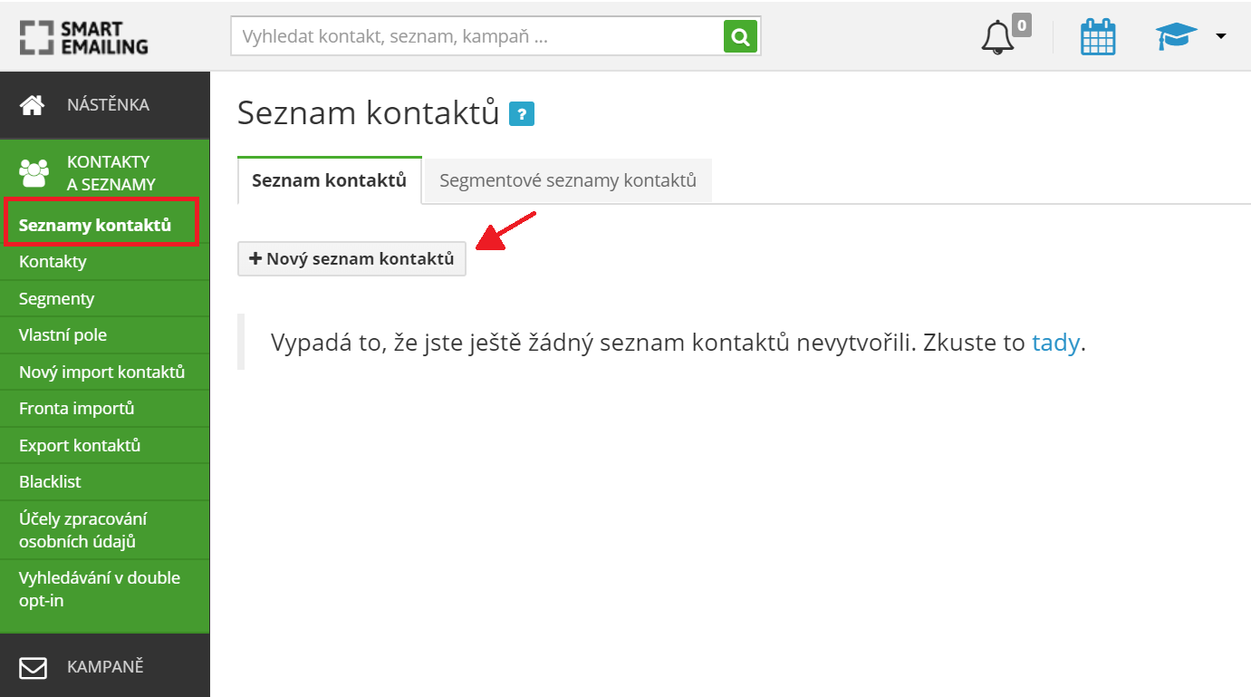 In your SmartEmailing, click on the tab called Contacts and Lists in the left menu and select Contact Lists from the next menu.